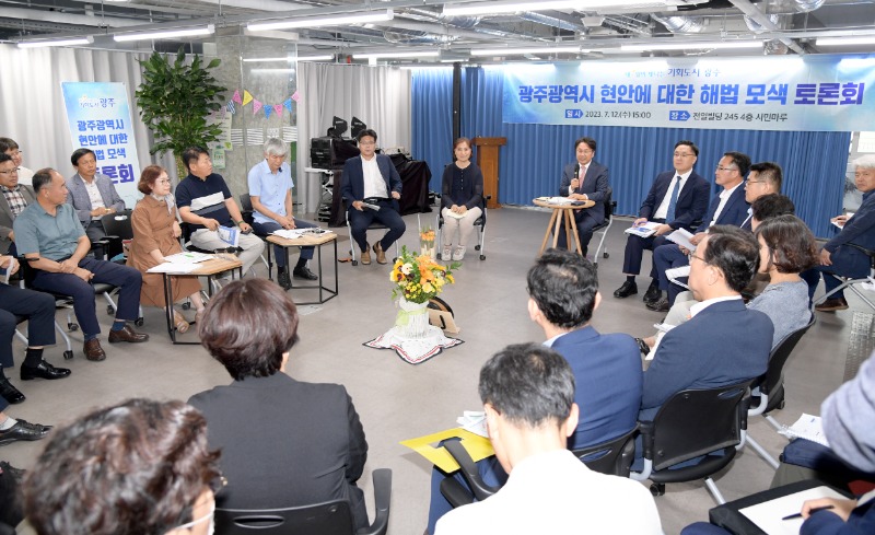 광주광역시(시장 강기정)는 12일 오후 광주NGO시민센터 시민마루에서 ‘광주광역시 현안에 대한 해법 모색 토론회’를 개최했다. 이번 토론회에는 강기정 시장과 실국장 등 20여명, 23개 시민사회단체 40여명이 참석했다.