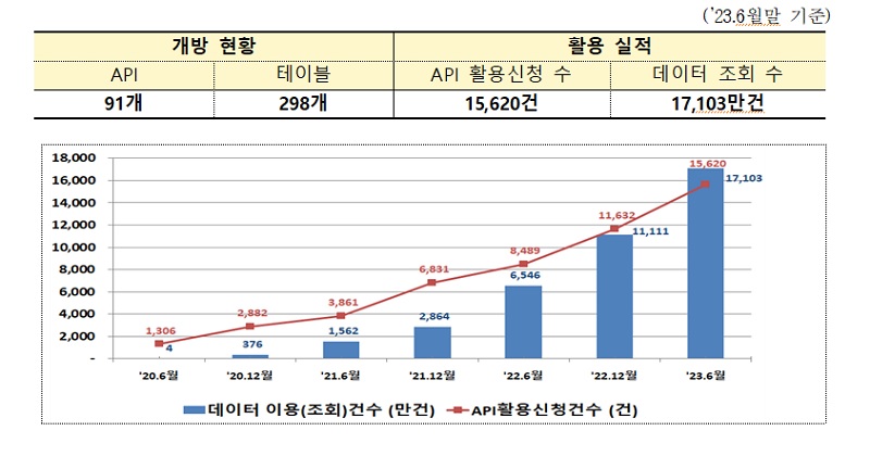 2020년 최초 개방 이후 3년간 금융공공데이터 조회는 1억7103만 건, API 활용신청은 1만 5620건으로 집계됐다.
