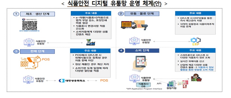 식품을 제조하는 단계부터 최종 소비단계까지 관련 정보를 QR코드에 반영해 식품 전(全) 주기의 이력 관리를 강화한다.