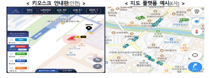 지도 어플리케이션 등을 통해 버스의 실시간 위치와 이동 정보를 시각화해 제공하는 방식이다.