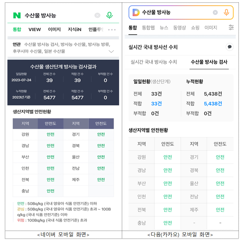 네이버·다음에서도 수산물 방사능 검사 결과 확인 가능