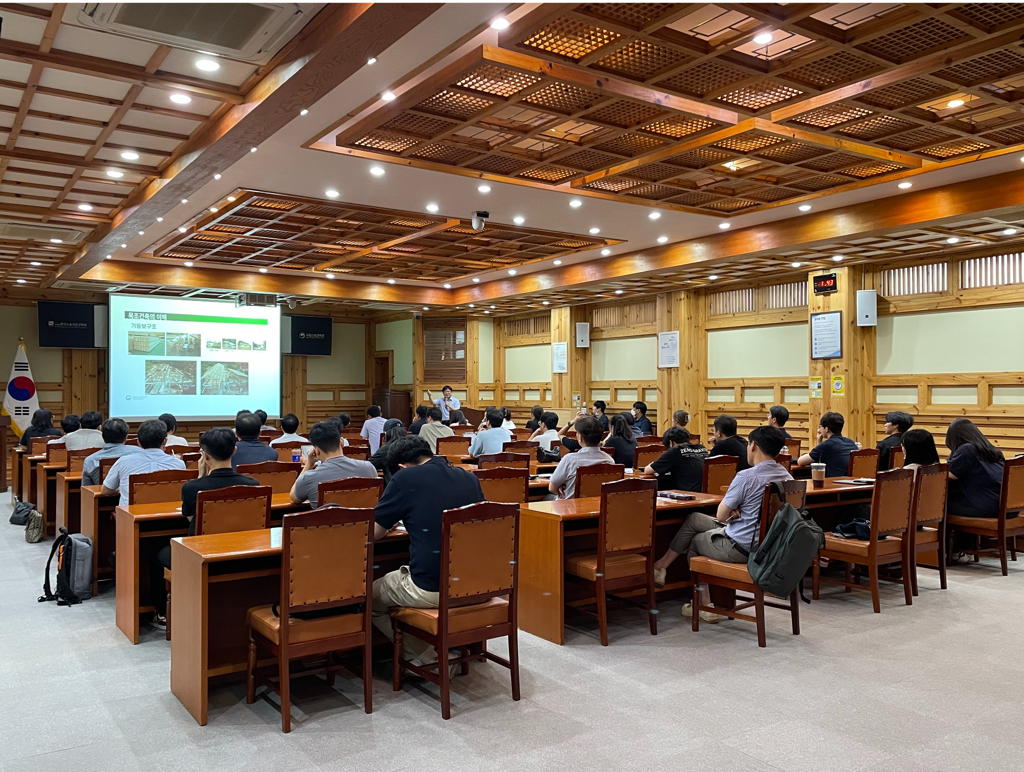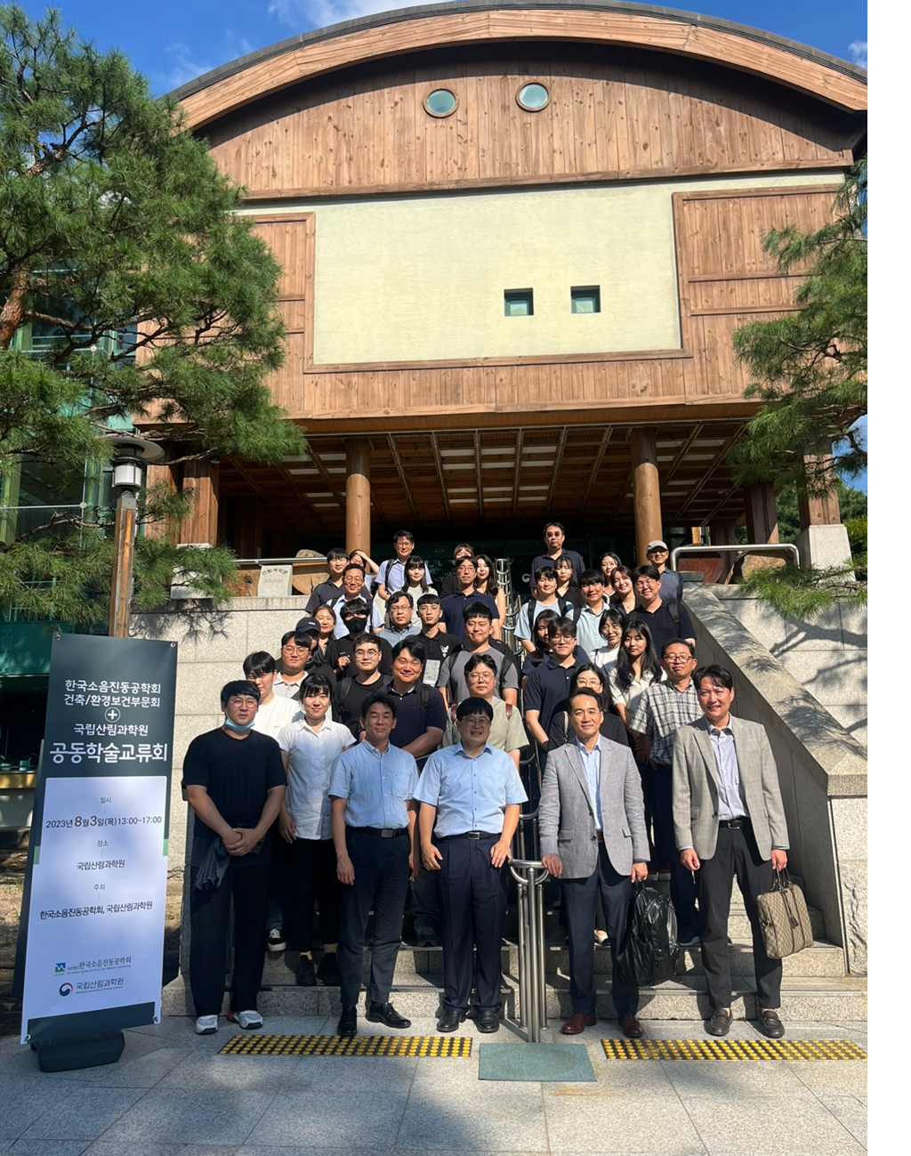 학술교류회는 (사)한국소음진동공학회와 공동으로 주최하였으며, 목조건축과 더불어 자연을 건축 공간에 접목하는 바이오필릭 디자인*과 관련된 최신 연구성과 소개와 건축 분야와 목재 분야 전문가들의 활발한 기술 정보 교류가 있었다.