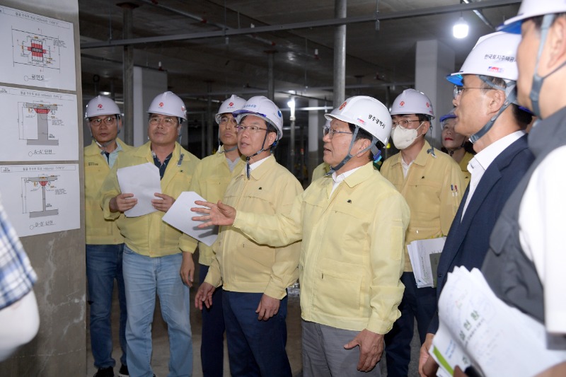 강기정 광주광역시장은 3일 오후 광산구 선운2공공주택지구 공사현장을 방문해 공사현황, 철근 누락 경위, 향후 보강 방안 등을 점검했다.