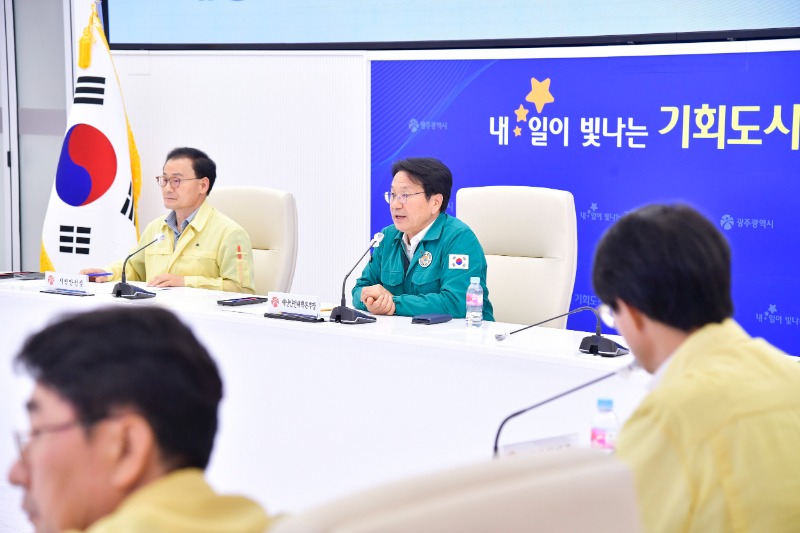 강기정 광주광역시장은 8일 오후 시청 충무시설에서 태풍 대비상황 긴급점검회의를 주재하고 5개 자치구와 부서별 중점 관리사항 및 대처계획을 점검했다.