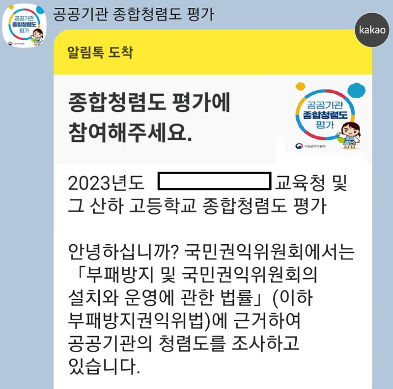 국민권익위는 올해부터 모바일 조사를 기존 문자와 함께 접근이 용이한 카카오톡까지 활용해 응답자 편의와 응답률를 높이고자 한다.