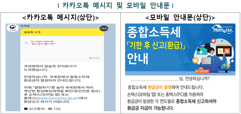 국세청, 24~25일에 모바일 환급 안내문(카카오톡) 발송 예정