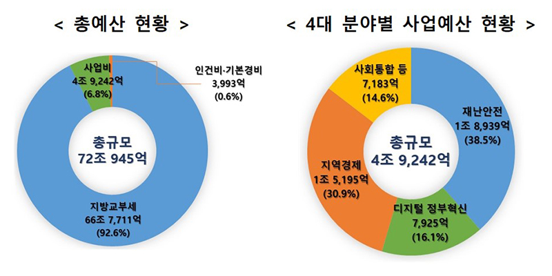 행정안전부는 주요 사업비 규모가 올해 4조 8145억 원 대비 1097억 원 늘어난 4조 9242억원을 2024년도 예산안으로 편성했다고 29일 밝혔다.
