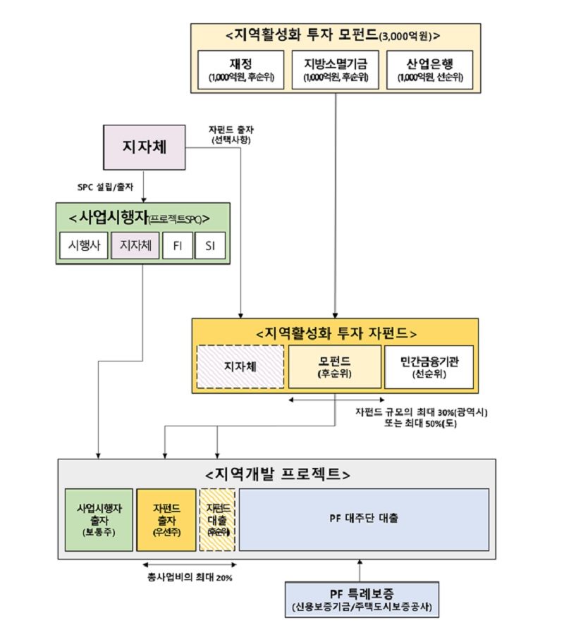 지역활성화 투자 펀드는 정부 재정, 산업은행, 지방소멸대응기금 등에서 각각 1000억 원씩 출자해 총 3000억 원 규모로 모펀드를 조성하는 것을 목표로 한다.