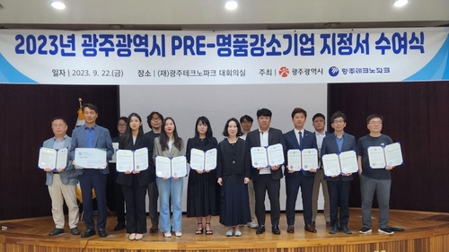 광주광역시는 지역경제를 견인할 '2023년 제7기 예비(PRE)-명품강소기업' 13곳을 선정하고 22일 광주테크노파크에서 지정서 수여식을 가졌다.