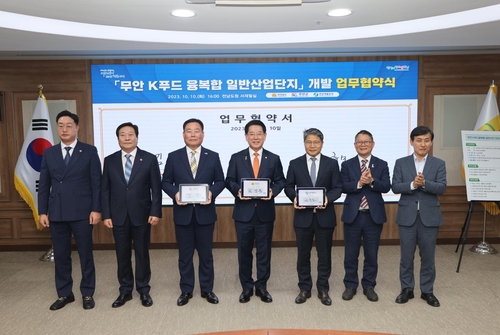 전남 무안군은 10월 10일 전남도청 서재필실에서 전라남도, 전남개발공사와 K푸드융복합 산업단지 개발사업 추진을 위한 업무협약을 체결했다.