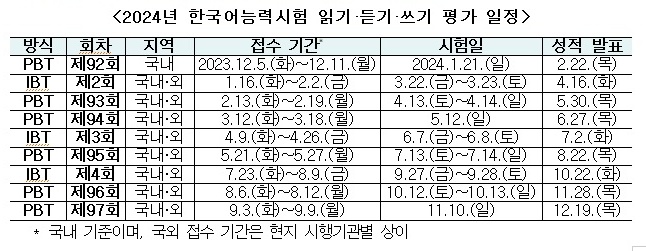 교육부는 11일 한국어능력시험의 운영 방법, 세부 일정 등을 포함한 ‘2024년 한국어능력시험(TOPIK) 시행계획’을 발표했다.