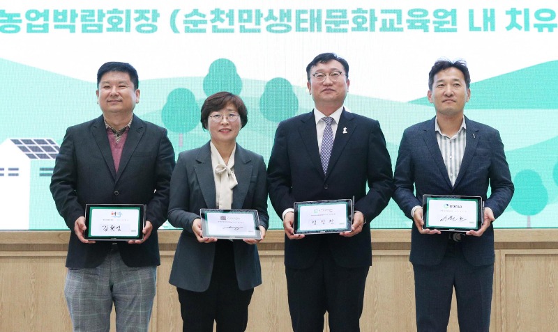 (재)전라남도국제농업박람회는 18일 치유농업주제관에서 와이마트와 전남 농축수산물 구매약정, 창대F&B, 네시피F&B, 영농법인 광수와 수출약정을 했다고 밝혔다.