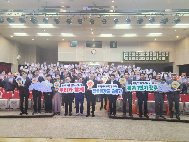 광주광역시(시장 강기정)는 20일 오후 동구청 대회의실에서 ‘우리가 함께 만들어 가는 촘촘한 복지1번지 광주’라는 주제로 ‘2023년 지역사회보장협의체 역량강화 콘퍼런스(학술회의)’를 개최했다.