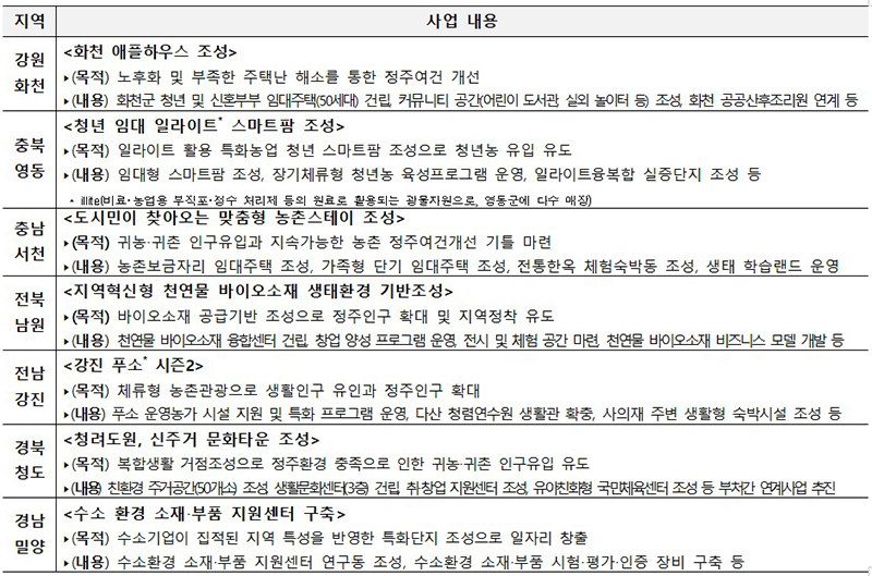 올해 평가 결과에 따라 상위 20%에 해당하는 인구감소지역 18개와 관심지역 4개 등 총 22개 지역은 지역 여건을 반영해 특색있는 기금사업을 담았다.