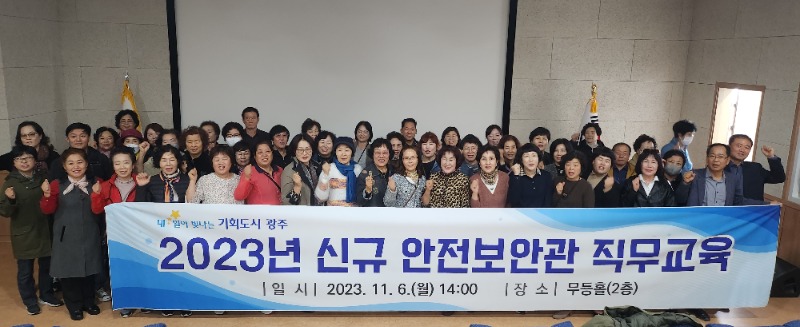 광주광역시(시장 강기정)는 6일 시청 무등홀에서 안전보안관 신규 모집자 및 재교육 대상자 60여 명을 대상으로 ‘2023년 안전보안관 소양교육’을 실시했다.