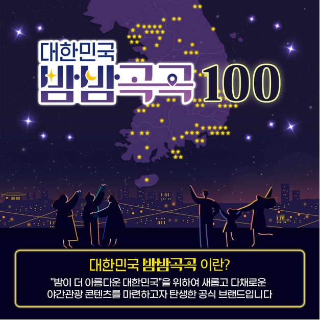 이번에 선정된 ‘대한민국 밤밤곡곡 100’은 지방자치단체에서 각 지역의 후보지를 추천받고 전문가 검토를 거쳐 확정했다.