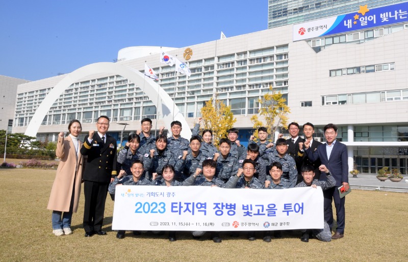 광주광역시(시장 강기정)는 15~16일 이틀동안 해군 ‘광주함’에서 복무 중인 타지역 출신 장병 18명을 초청해 ‘2023년 제2차 타지역 장병 빛고을 투어’를 실시했다.