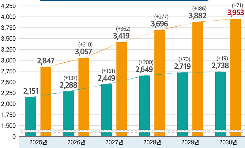 또한 각 대학은 정원을 지속적으로 확대해 2030학년도까지 최소 2738명에서 최대 3953명을 추가 증원하기를 희망했다.