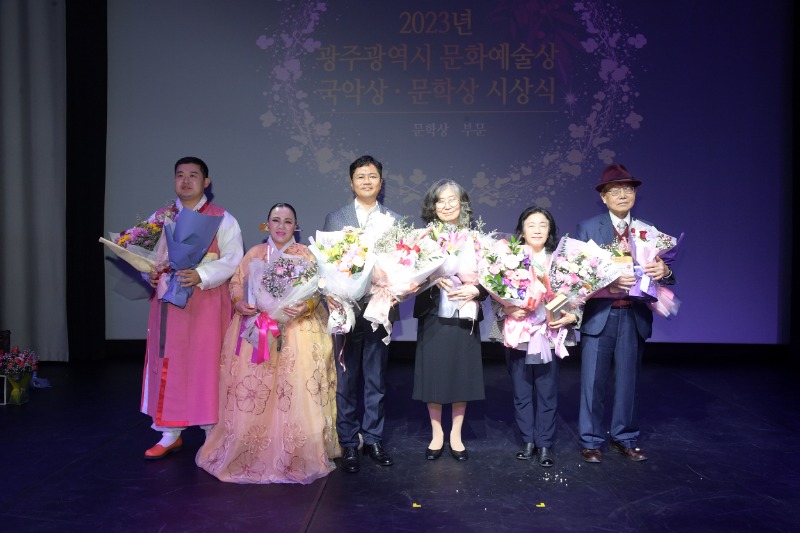 서구 광주공연마루에서 열린 국악상과 문학상 시상식에서는 임방울국악상 본상 모보경(59·전북도립국악단 교수) 씨, 임방울국악상 특별상 김승호(42·김승호국악연구소원장), 박용철문학상 서용좌(79·소설가) 씨, 김현승문학상 이돈배(84·송원대학교 명예교수) 씨, 정소파문학상 서연정(65·광주전남시조시인협회 회장) 씨 등 5명이 수상했다.
