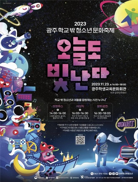 광주광역시(시장 강기정)는 광주광역시학교밖청소년지원센터와 함께 23일 광주학생교육문화회관에서 ‘2023년 학교밖 청소년문화축제-오늘도 빛난다’를 개최한다.