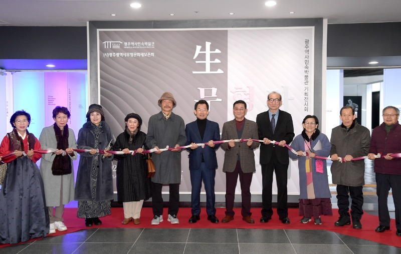 광주역사민속박물관은 29일 기획전시실에서 문영훈 광주시 행정부시장, 이복수 광주무형문화재보존회 이사장, 무형문화재 기능 및 예능 보유자, 김도영 광주박물관미술관협의회장 등 100여 명이 참석한 가운데 ‘生 : 무형과 유형 사이’ 전시회 개막행사를 진행했다.