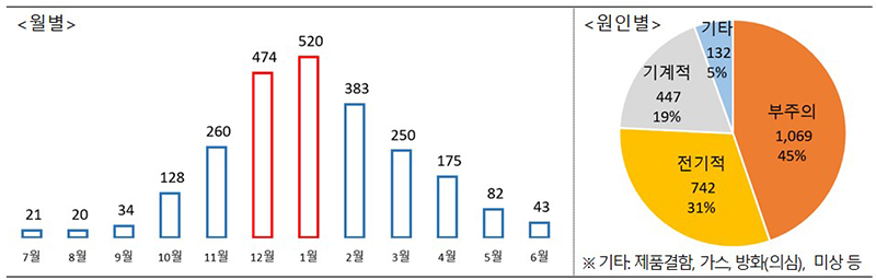 12월~1월 발생이 전체 42% 차지…화재 원인 ‘부주의’ 45%로 최다