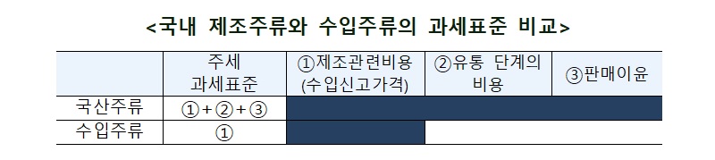 이럴 경우 국내 제조 주류의 세 부담이 수입산 주류보다 높은 역차별 현상이 해소될 것으로 기대된다.