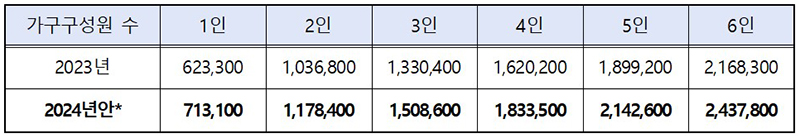 이에 따라 내년도 금융재산 기준은 1인 가구의 경우 822만 8000원, 2인 가구는 968만 2000원, 3인 가구는 1071만 4000원, 4인 가구는 1172만 9000원이 된다.