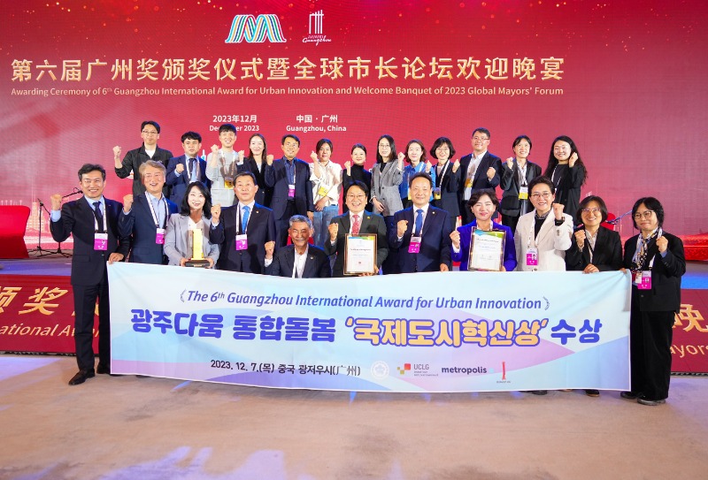 한편 광주시는 ‘광주다움 통합돌봄’ 정책으로 제6회 국제도시혁신상을 수상했다. 전 세계 54개국 193개 도시 330개의 우수정책 중 5개 정책만이 최고상으로 선정됐다. 세계지방정부연합(UCLG), 세계대도시연합(Metropolis), 중국 광저우시(세계대도시연합 공동회장도시)가 공동 주관한다. 도시의 혁신사례를 발굴하고, 상호 공유하여 세계 도시 간 공동 발전을 도모하기 위해 2012년 설립되어 국제적으로 권위와 명성을 인정받고 있다.