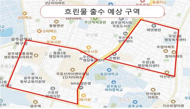북구 우산동·두암동·중흥동 광주시 “흐린물 주의하세요”