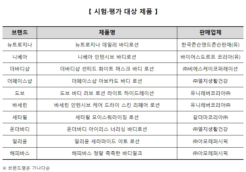 한국소비자원, 바디로션 10개 제품 시험·평가 결과 공개