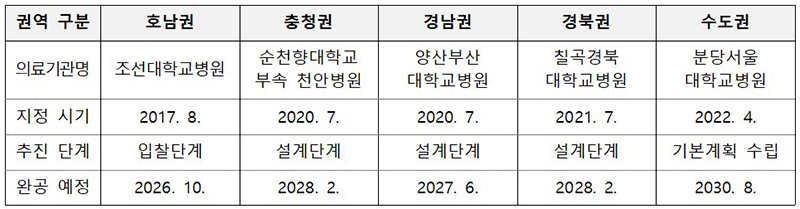 정부가 미래 팬데믹에 대응해 오는 2026년 호남권을 시작으로 2030년까지 충청·경남·경북·수도권 등 총 5개 권역에 ‘감염병전문병원’을 도입한다.