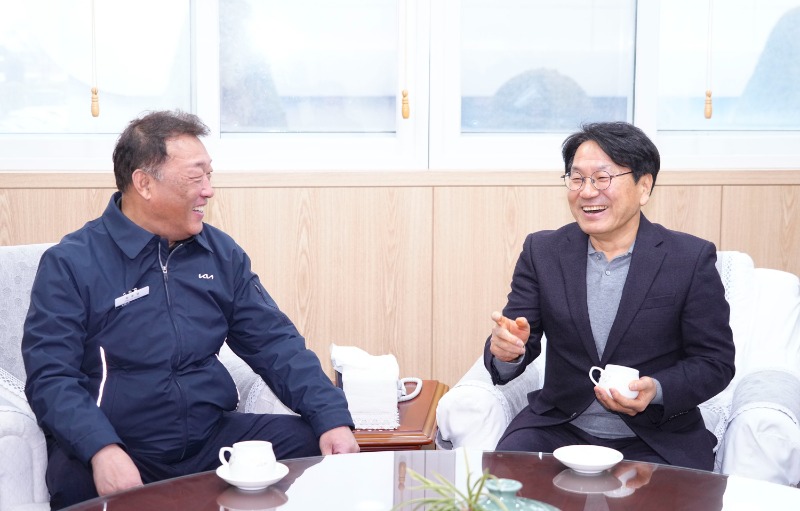 또 셀토스‧쏘울 등을 생산하는 1공장을 둘러보며 글로벌 생산공장으로 발돋움한 기아에 큰 성원의 뜻을 전했다. 이어 노조사무실에 들러 은용철 노조위원장 등을 만나 노사화합 성과를 격려했다.