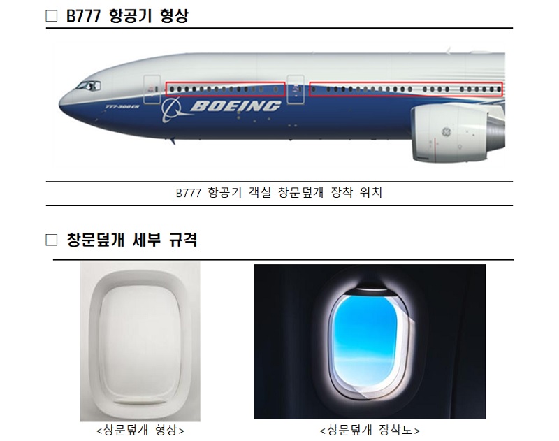국내 중소업체, B777 항공기 객실 창문덮개 국산화 성공