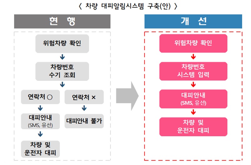 금융당국, 보험개발원 등과 공동으로 ‘차량 대피 알림 시스템’ 구축