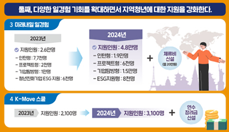 미래내일 일경험 사업도 인턴형·프로젝트형·기업탐방형·기업ESG지원형 등을 포함해 2만 6000명에서 4만 8000명으로 넓힌다.