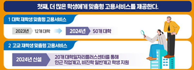 지난해 12개 대학, 3만 명이었던 대학 재학생 맞춤형 고용서비스를 올해 50개 대학, 12만 명으로 확대한다.