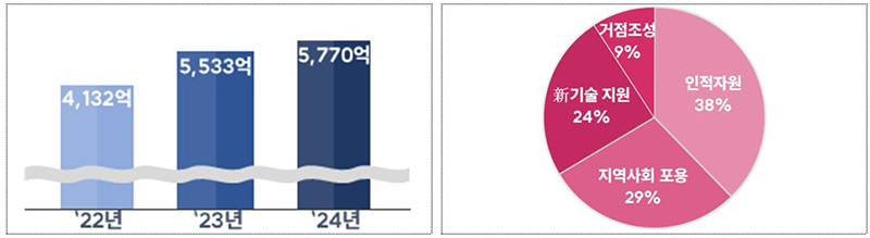 지방 디지털 혁신 사업은 지난해 대비 237억원을 증액해 ▲디지털 혁신지구 등 거점 조성에 531억원 ▲인공지능 등 신기술 융합·확산에 1408억원 ▲지역사회 포용에 1656억원 ▲디지털 인재 양성에 2175억원을 지원하기로 했다.