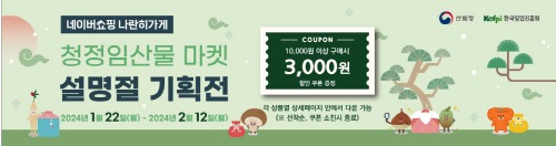 이번 ‘설 명절맞이 임산물 온라인 판매기획전’은 우체국쇼핑 ‘청정임산물 브랜드관’, 네이버쇼핑 ‘청정임산물 마켓’ 기획전을 통해 22일 부터 다음달 12일 까지 진행되며, 총 148개 업체의 800여 개 상품을 편리하게 만나볼 수 있다.