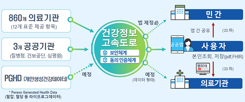 특히 환자의 의료기관 이용 편의를 높이고, 국민이 언제 어디서나 편리한 맞춤형 건강관리를 받을 수 있도록 개인 건강정보의 자유로운 활용을 지원한다.
