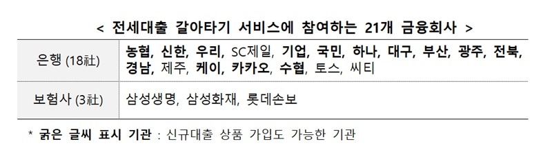 21개사 대출, 14개사 신규대출로 대환…전세 대출 3개월 후부터 대환 가능