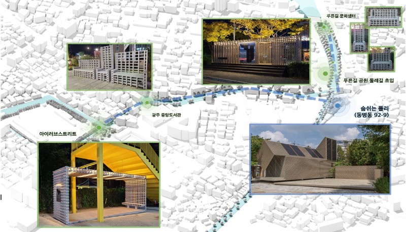 현재 폴리를 연결하는 둘레길은 국립아시아문화전당 주변 중앙도서관과 서석초등학교 앞 ‘아이러브 스트리트’에 이어 푸른길공원과 연계한 거점시설 ‘숨쉬는 폴리’, 농장다리에 위치한 ‘푸른길 문화샘터’를 잇는 약 2㎞ 1차 구간이 지난해 10월말 완료됐다.