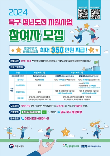 한편 북구는 지난 2021년부터 올해까지 청년도전 지원사업 대상지로 4년 연속 선정됐으며 지난해 사업에는 246명의 지역 청년이 참여해 95명(38.6%)이 취·창업, 국민취업지원제도 연계, 직업 훈련 참여 등 경제활동에 참여하는 성과를 거두었다.