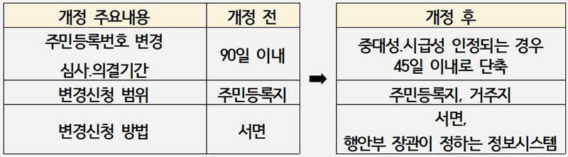 주민등록번호 변경 처리기간, 90일 → 45일 이내로 단축