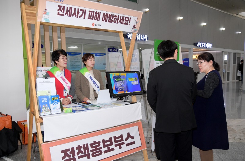 전세사기 피해가 청년층에 집중됨에 따라 광주시는 청년일자리사업 행사장에서 전세사기 피해예방 홍보활동을 벌였다.