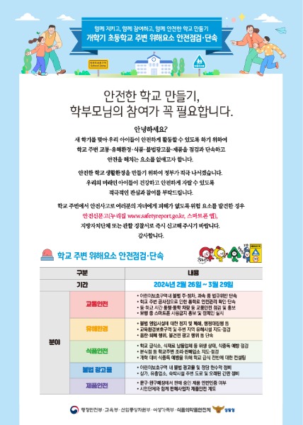 초등학교 개학기 위해요소 집중 안전점검