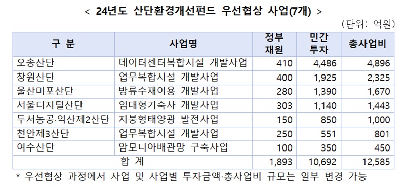 또 울산미포산단에는 방류수재이용 등 저탄소화·디지털화 관련 인프라 구축 사업이 우선협상 대상으로 선정됐다.
