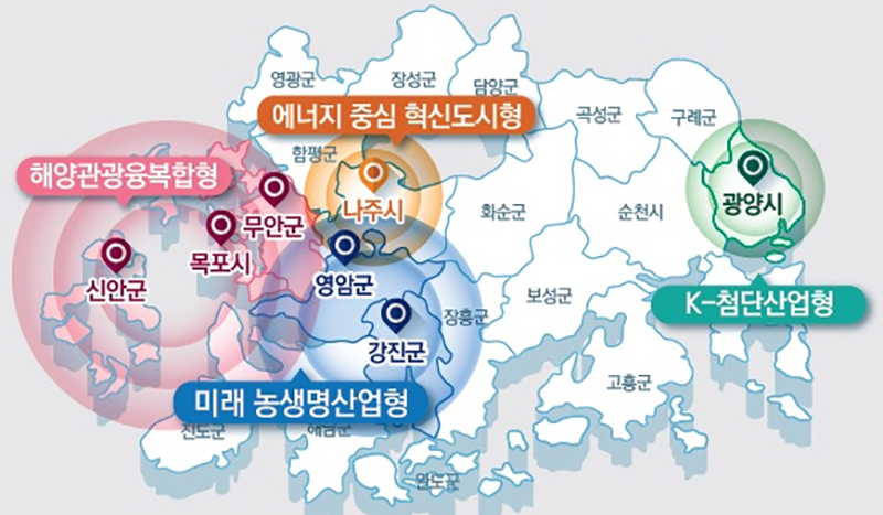 한편 전남은 광양 이차전지, 순천 문화콘텐츠, 여수 수소산업 클러스터, 목포·해남 해상풍력, 해남 데이터센터, 무안 반도체 및 항공정비의 기회발전특구를 준비하고 있다.