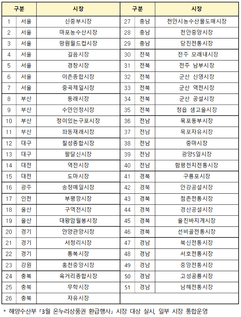 전국 전통시장 51곳에서 온누리상품권 환급받으세요