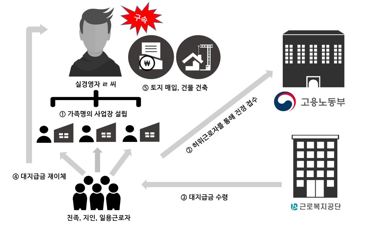 특히, 가족, 지인 등 다수의 허위근로자를 동원하여 대지급금을 받게 하고 일부는 본인이 편취하는 등 죄질이 불량한 사업주 2명은 구속·기소했다.